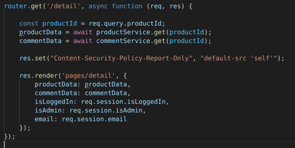 res.set("Content-Security-Policy-Report-Only", "default-src 'self'");