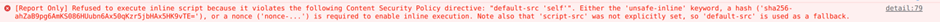 Once you’ve added this, restart the app, navigate to the page and you will then see something like the following in the browser console showing the inline script has been blocked: